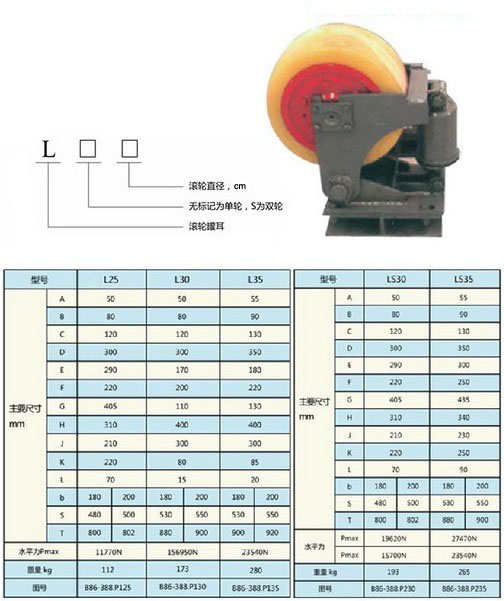 - 滾輪罐耳原理新型滾輪罐耳的工作原理:滾輪通過(guò)軸與擺架連接,擺架通過(guò)銷(xiāo)軸與支座及緩沖器與復(fù)合調(diào)整器連接,緩沖器與復(fù)合調(diào)整器4通過(guò)銷(xiāo)軸與擺架及支座連接,緩沖器與復(fù)合調(diào)整器由殼體Ⅰ和殼體Ⅱ、碟形彈簧、彈簧予緊力調(diào)整螺母、導(dǎo)桿共同組成,通過(guò)轉(zhuǎn)動(dòng)殼體Ⅱ可調(diào)整懸掛長(zhǎng)度,從而調(diào)整滾輪位置,用鐵絲可鎖緊殼體Ⅰ、Ⅱ;調(diào)整螺母、調(diào)整工具孔用于插入棒狀工具以使螺紋相對(duì)轉(zhuǎn)動(dòng);懸掛孔用于與擺架和支座連接。滾輪罐耳以液壓緩沖器取代傳統(tǒng)的緩沖結(jié)構(gòu),承載能力大、運(yùn)行平穩(wěn)、可靠性高、壽命長(zhǎng)、調(diào)整維修方便。 滾輪罐耳底座等零部件采用新型材料,整體結(jié)構(gòu)強(qiáng)度更高,抗沖擊性強(qiáng)。 緩沖器復(fù)位壓力小,可有效地避免滾輪與罐道產(chǎn)生異常碰撞。通過(guò)杠桿傳遞到減震筒上,同時(shí)起到導(dǎo)向、緩沖與穩(wěn)定作用。罐道與罐耳由滑動(dòng)摩擦變?yōu)闈L動(dòng)摩擦,因此減少了動(dòng)力消耗,降低了噪音,罐道和罐耳的磨損也大大降低。從而,提高了罐道和罐耳的使用壽命。滾輪罐耳標(biāo)準(zhǔn)【滾輪罐耳國(guó)標(biāo)標(biāo)準(zhǔn)】MT236-2011(國(guó)標(biāo)):本標(biāo)準(zhǔn)規(guī)定了矩形鋼雄道滾輪罐耳(以下簡(jiǎn)稱滾輪罐耳) 的產(chǎn)品分類(lèi)、技術(shù)要求、試驗(yàn)方法、檢驗(yàn) 規(guī)則、標(biāo)志、包裝、運(yùn)輸和貯存。 滾輪罐耳本標(biāo)準(zhǔn)適用于立井提升容器(箕斗、罐籠、平衡錘)沿矩形鋼罐道導(dǎo)向的滾輪罐耳。發(fā)布日期:2011-04-12 實(shí)施日期:2011-09-01 代替標(biāo)準(zhǔn):MT236-1991國(guó)家安全生產(chǎn)監(jiān)督管理總局公告2011年第13號(hào)引用標(biāo)準(zhǔn):GB/T 700;GB/T 985.1;GB/T 1184-1996;GB/T 1804-2000;GB/T 9286;GB/T 10111;JB/T 5000.3-2007;JB/T 5000.10;JB/T 5000.12-2007;MT/T 154.1;《煤礦安全規(guī)程》 國(guó)家安全生產(chǎn)監(jiān)管理總局、國(guó)家煤礦監(jiān)察局【滾輪罐耳現(xiàn)場(chǎng)評(píng)審必須具備的引用標(biāo)準(zhǔn)】GB/T1972 碟形彈簧GB/T1804 一般公差 未注公差的線性和角度尺寸的公差GB/T1184 形狀和位置公差 未注公差值MT113 煤礦井下用聚合物制品阻燃抗靜電性通用試驗(yàn)方法和判定規(guī)則熱銷(xiāo)型號(hào):L25滾輪罐耳L25滾輪罐耳-技術(shù)參數(shù):型號(hào): L25預(yù)緊力(kg): 300水平最大緩沖力(KN):12緩沖行程(mm): 13使用提升速度(m/s): 8-12L25滾輪罐耳-主要特點(diǎn):L25滾輪罐耳輪軸采用橡膠密封語(yǔ)機(jī)械密封相結(jié)合的組合密封方式,膠圈采用高耐磨材料,安全可靠,壽命長(zhǎng)。1.支架擺動(dòng)銷(xiāo)軸裝有高分子耐磨軸套,使用中不產(chǎn)生松動(dòng)現(xiàn)象。2.緩沖裝置采用符合彈性體緩沖結(jié)構(gòu),性能穩(wěn)定,免維護(hù)。3.可用緩沖裝置來(lái)方便的調(diào)整滾輪與罐道間的位置。4.表面防范采用鍍鋅刷漆新工藝,防腐防銹性能好。滾輪罐耳由中間布置一個(gè),左右側(cè)各一個(gè)組成一組。滾輪罐耳可根據(jù)用戶要求進(jìn)行設(shè)計(jì)。滾輪罐耳-規(guī)格型號(hào)滾輪罐耳分為L(zhǎng)系列單輪滾輪罐耳和LS雙輪滾輪罐耳。L系列單輪滾輪罐耳型號(hào)有:L25,L30,L35,L40,L45;LS系列雙輪滾輪罐耳型號(hào)有:LS30,LS35,LS40,LS45。