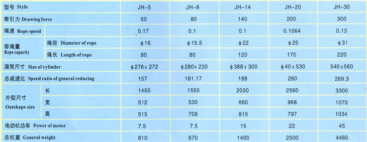JH-8礦用回柱絞車主要技術(shù)參數(shù)