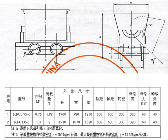 - 翻斗式礦車是煤礦中用量最大的運(yùn)輸設(shè)備之一,主要用于井上、井下運(yùn)輸煤、矸石、材料等,也可用于其它礦山或地下工程運(yùn)輸物料。一般由電機(jī)車、絞車牽引,具有耐沖擊,運(yùn)輸安全、可靠,大容積等特點(diǎn)。翻斗式礦車適用于煤炭、金屬、非金屬礦山或建筑工地,是用來(lái)運(yùn)輸碎塊狀等松散物料的運(yùn)輸車輛。如煤炭、礦石、渣石和石料等。其基本組成為:車廂、車架、緩沖器及行走機(jī)構(gòu)等組成,該KFU0.75-6型翻斗式礦車的主要形式結(jié)構(gòu)為:在由鋼板焊接而成的車廂兩端各裝設(shè)有一個(gè)弧形滾圈,支撐在車架的翻轉(zhuǎn)軌上,通過(guò)人力打開車廂的止動(dòng)裝置后,稍加外力便可使車廂向車體兩側(cè)任意翻轉(zhuǎn)進(jìn)行卸載,其卸載傾角可達(dá)40°以上。翻斗式礦車概述: KFU0.75-6型翻斗式礦車車箱斷面為V形或U形,支承在車架的翻轉(zhuǎn)軌上,車箱在翻轉(zhuǎn)軌上翻轉(zhuǎn)卸載。 翻斗式礦車分為大碰頭和小碰頭,大碰頭一般都是全錨的,而小碰頭一般都是焊接的。 翻斗式礦車主要型號(hào)包括:KFU0.55-6翻斗式礦車,KFU0.75-6型翻斗式礦車。 注:翻斗式礦車也可根據(jù)用戶要求,制做各式異型礦車。翻斗式礦車用途: KFU0.75-6型翻斗式礦車被廣泛用于煤礦、金礦、鐵礦、石膏礦等礦山行業(yè)。在礦山或建筑工地上,用來(lái)運(yùn)輸碎的塊狀物料,例如:礦石、煤炭、石頭等等。KFU0.75-6型翻斗式礦車特點(diǎn):1、翻斗式礦車結(jié)構(gòu)簡(jiǎn)單,堅(jiān)固耐用,只要人力打開止動(dòng)板,就能很容易地卸下物料。2、翻斗式礦車相對(duì)來(lái)說(shuō)自動(dòng)化程度很高,輪軸采用了滾柱軸承,有效地減少了運(yùn)行阻力,因此用機(jī)車或人力均能牽引或推動(dòng)。3、翻斗礦車不需用任何輔助設(shè)施,可左右自動(dòng)翻轉(zhuǎn),使用靈活、輕便。KFU0.75-6型翻斗式礦車的結(jié)構(gòu)組成:翻斗式礦車是由車箱、車架、緩沖碰頭、輪軸等組成。1、車箱:由箱板、端蓋、口邊角鋼等焊接組成。2、車架:由槽鋼、翻斗式礦車-角鋼、碰頭、軸卡等焊接組成。3、輪對(duì):由車輪、軸、軸承等組成。4、連接插銷:由Φ40mm優(yōu)質(zhì)碳結(jié)元鋼,手提環(huán)焊接組成。翻斗式礦車型號(hào)表示含義: 例:KFU0.75-6翻斗式礦車1、 K:表示煤礦車輛;2、 F:表示翻斗式礦車;3、 U:表示該車車箱的形狀;4、 0.75:表示該車的容積為0.75m³;5、 6:表示該車所使用的軌距為600mm。KFU0.75-6型翻斗式礦車保養(yǎng)與維護(hù)為保證礦車的正常行駛和延長(zhǎng)使用壽命,需要每天檢查,每月維修,必須保證車輪無(wú)卡滯及不轉(zhuǎn)動(dòng)現(xiàn)象。 應(yīng)按照輪對(duì)的日常維護(hù)要求定期填加潤(rùn)滑油,保證良好的潤(rùn)滑,定期清除煤泥,及其它附屬物,保證足夠的容量;檢查防脫插銷是否有彎曲、裂紋等缺陷;檢查緊固件上的螺栓是否松動(dòng)等,防止發(fā)生意外。 此外還要隨時(shí)更換易損壞零配件。KFU0.75-6型翻斗式礦車注意事項(xiàng)1、使用過(guò)程中,礦車所受的負(fù)荷不準(zhǔn)超過(guò)規(guī)定的數(shù)值。2、聯(lián)接裝置發(fā)生故障時(shí)禁止工作。3、車架在震動(dòng)時(shí)剛性地沖撞輪軸,禁止在車底架與輪對(duì)有故障時(shí)使用以免損壞車軸。4、如發(fā)現(xiàn)插銷、三環(huán)鏈表面嚴(yán)重銹蝕或嚴(yán)重變形應(yīng)報(bào)廢。5、禁止礦車剛碰頭相互接觸。6、當(dāng)?shù)V車軌道變形時(shí)應(yīng)及時(shí)調(diào)整,否則礦車輪對(duì)易損,運(yùn)輸過(guò)程中容易跳道。KFU0.55-6型翻斗式礦車KFU0.55-6型翻斗式礦車是我公司是全國(guó)重要的礦車專業(yè)生產(chǎn)廠家之一,主要生產(chǎn)KFU0.55-6型翻斗式礦車0.55立方米、 0.75立方米、0.85立方米、1.1立方米V型翻斗式礦車,0.7立方米、1.1立方米、1.5立方米U型固定式礦車,0.7立方米、1.2立方米側(cè)卸式礦車及1.5噸、3噸底卸式礦車。KFU0.55-6型翻斗式礦車廣泛用于煤礦、金礦、鐵礦、石膏礦等礦山行業(yè),也可根據(jù)用戶要求,制做各式異型礦車,公司生產(chǎn)的 翻斗式礦車,堅(jiān)固耐用,使用靈活,深受廣大用戶好評(píng)。KFU0.55-6型翻斗式礦車的主要技術(shù)參數(shù):