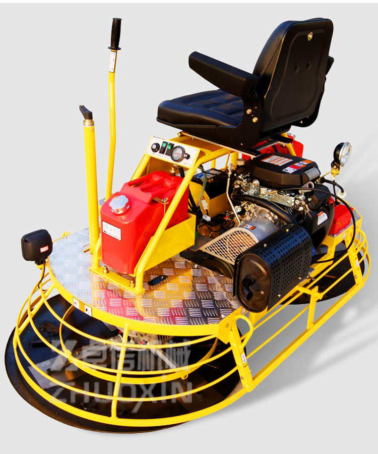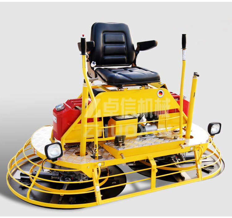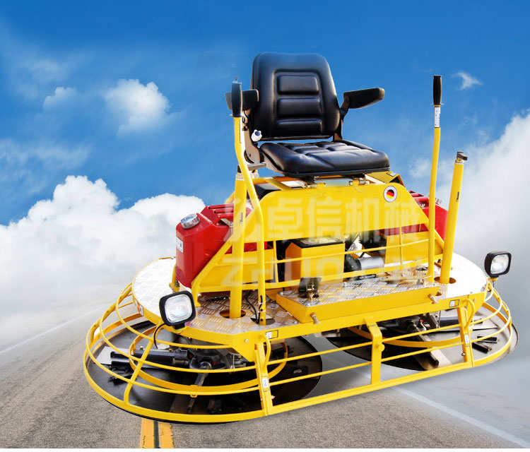 - 座駕式抹光機用于混凝土地面的提漿、壓實、抹平、抹光。相對于手扶式抹光機,效率極高。座駕式抹光機具有以下特點1.駕駛型操作,大大減輕了勞動強度,提高工作效率。2.雙刀盤,對地面有更好的壓實效果。3.機械式轉(zhuǎn)向操作系統(tǒng),反應(yīng)靈敏,操作輕松、舒適。4.可同時安裝兩只抹盤,進(jìn)行快速提漿。5.裝備大馬力點啟動發(fā)動機,提供強勁可靠的動力。6.控制螺桿可調(diào)整葉片角度。7.抹光刀支撐臂,選用經(jīng)嚴(yán)格熱處理的超大直徑碳結(jié)構(gòu)鋼,可適應(yīng)個別工人的野蠻操作。座駕式抹光機技術(shù)參數(shù)型號 FMZ-S36工作 功率 24hp/3600rpm操作方式 駕駛式油箱容積 20L工作寬度 75in.潤滑油量 1.8L工作速度 0-135rpm燃油消耗量 313g/kWh抹刀數(shù)量 8總長 1940mm抹刀尺寸 350x150mm總寬 990mm固定孔距 4.75 in總高 1050mm發(fā)動機 包裝尺寸 1950x1010x1070mm型號 HONDA,GX670類型 汽油機,空冷4沖程,OHV,雙缸工作重量 300kg★駕駛式操作,大大降低了勞動強度,提高了工作效益,施工效率是普通抹光機的5-8倍。單人操作,降低施工成本。★雙刀盤工作,重量更大,對地面具有更好的壓實效果,大大提高了路面的密實度。施工功效比手扶式抹光機更高★可同時安裝兩張?zhí)釢{圓盤,進(jìn)行快速提漿。★機械式轉(zhuǎn)向操作系統(tǒng),反應(yīng)靈敏,控制輕松自如,操作靈活舒適。★裝備世界知名品牌本田GX690 汽油大馬力電起動發(fā)動機,提供強勁可靠的動力。★腳踏式安全切斷開關(guān),可迅速關(guān)閉發(fā)動機,提供最大的安全保障。★腳踏油門控制,反應(yīng)靈敏,提速快捷.★汽油發(fā)動機中置設(shè)計和雙聯(lián)軸器,使整機具有良好的工作性能。★配備了14升水箱、油箱可供較長時間連續(xù)作業(yè).★噴水與前后照明裝置,對施工更有幫助。★用于水泥混凝土表面的提漿、抹平,抹光。廣泛應(yīng)用于高標(biāo)準(zhǔn)公路、倉庫,場地等水泥混凝土路面及地坪的施工。★可選裝行走裝置,工地移動更方便。座駕抹光機操 作 控 制 要 領(lǐng)操作員就位后,左腳踩下熄火踏板后右腳稍踩油門控制板。啟動發(fā)動機,雙手握操縱桿稍作低速運轉(zhuǎn)(怠速)后加大油門,進(jìn)行正常作業(yè)。操縱桿向前推,機器向前走,向后拉機器向后退。右手拉同時左手推,機器順時針轉(zhuǎn)。左手拉同時右手推,機器逆時針轉(zhuǎn)。雙手將操縱桿向右移,機器右行。雙手將操縱桿向左移,機器左行。松開右腳踏板,機器怠速,刀片停止旋轉(zhuǎn)。松開左腳,機器熄火。關(guān)閉發(fā)動機電門,結(jié)束操作。裝備國際名牌汽油機,名牌品質(zhì)保證,性能優(yōu)越,啟動容易;變速箱大模數(shù)設(shè)計,鋁合金箱體,免維護(hù),使用壽命長;抹光刀支撐臂,選用經(jīng)嚴(yán)格熱處理的超大直徑碳結(jié)構(gòu)鋼,可適應(yīng)個別工人的野蠻操作;科學(xué)設(shè)計的離心式離合傳動機構(gòu),傳動扭矩大,使用壽命長,維護(hù)很方便;低重心設(shè)計,使機器運行平穩(wěn),靈活;表面噴塑,漂亮美觀,防銹耐蝕。該產(chǎn)品已出口美國、法國、加拿大、印尼、俄羅斯、越南、澳大利亞、韓國、伊朗等多個國家,獲得客戶的一致好評。因產(chǎn)品生產(chǎn)批次、具體型號不同,以上圖片僅供參考,詳情可聯(lián)系我們的銷售人員進(jìn)行具體核實。座駕式抹光機售后服務(wù)及交付說明1、座駕式抹光機性價比說明:同產(chǎn)品質(zhì)量條件下,我公司不以降低性能、更改產(chǎn)品零部件為代價,給出最低最實在的價格。(可根據(jù)客戶要求進(jìn)行產(chǎn)品的生產(chǎn)配置)2、座駕式抹光機交貨說明:按供貨期交貨,若有特殊情況,需提前交貨的,我公司在有限的范圍內(nèi)將會組織人員加大生產(chǎn)力度、實行生產(chǎn),安裝,調(diào)試,包裝等工藝,力求滿足貴公司要求.3.座駕式抹光機售后服務(wù)范圍:產(chǎn)品保修期為1年,在保修期內(nèi)產(chǎn)品屬質(zhì)量問題的我公司給予最快捷的維修,無任何費用,在保修期外需要更換零部件的,我公司只收取成本.山東卓信機械(官網(wǎng)http://www.jnzhuoxin.com)秉承山東人的豪爽與實誠,誠邀各位專家、領(lǐng)導(dǎo)來我公司考察、指導(dǎo)、賜教并期盼與您真誠合作,“追求卓越”永遠(yuǎn)是我們的主題,我們將勵精圖治,再創(chuàng)高效,力爭以先進(jìn)的技術(shù),優(yōu)良的產(chǎn)品質(zhì)量,為煤礦企業(yè)提供多方位的服務(wù)。